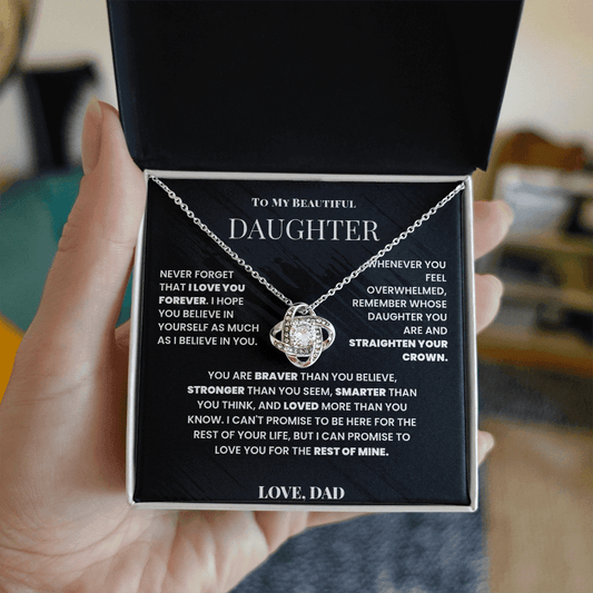 To My Beautiful Daughter - Straighten Your Crown - Love Knot Necklace